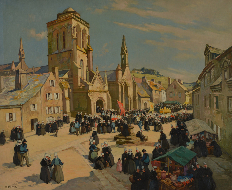 Henry BARNOIN (1882-1940) « Pardon de Locronan » Huile sur toile signée bas gauche, 59.5 x 73 cm