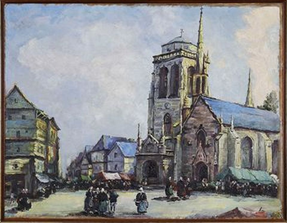 Henri Barnoin (1882-1940) ː « Marché au Faouët », non datée, huile sur toile,