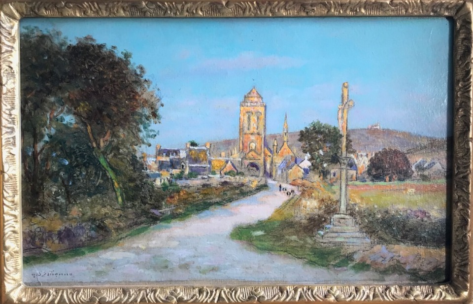 (Collection particulière) - DUPONT & Associés - Hôtel des ventes de MorlaixHenry d’Estienne (1972-1949) - « En descendant vers Locronan » Huile sur carton, signée en bas à gauche, 23x36 cm