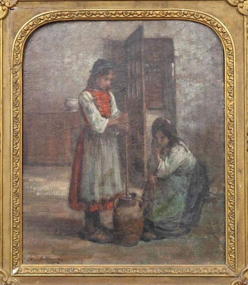 Léon BELLEMONT (1866-1961) - « Fillettes bretonnes », 1912, Huile sur toile signée et datée en bas à gauche 55 x 46 cm