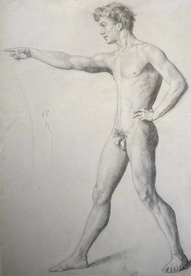 Leon Bellemont (1866 - 1961) - « Anatomie de l'homme ». Graphite sur papier vergé, signé au verso, filigrane du papier et cachet de l'atelier, 60.25 x 43.5 cm