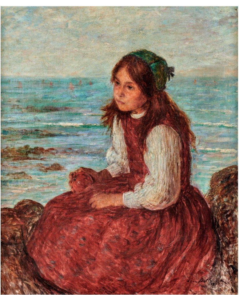 Léon Bellemont (1866, 1961) - « Jeune fille en bord de mer », 1917, Huile sur toile Signé et daté en bas à droite, 59.3 x 49 cm.