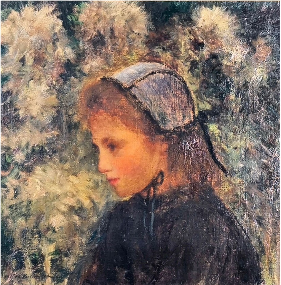 Léon BELLEMONT (1866-1961) - « La petite Bretonne ». Huile sur toile signée en bas à gauche. 33 x 33 cm