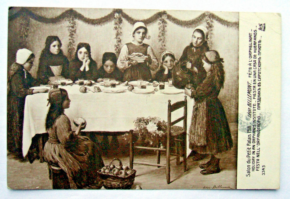 Léon BELLEMONT (1866-1961) - « Fête à l’orphelinat » Salon du Petit-Palais 1918. - Carte postale