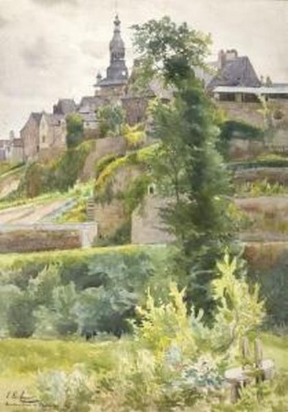 Léon le Royer (1858-1939) - « Vue de Montcontour de Bretagne »
