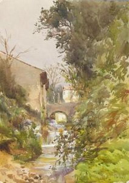 Léon le Royer (1858-1939) - « Torrent traversant un village »