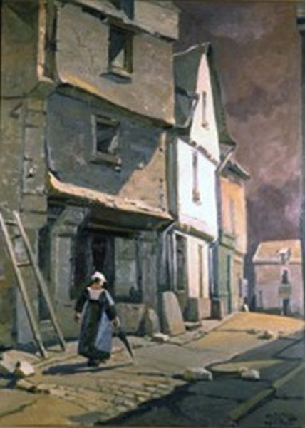 Après-Guerre, l'État français a acquis une grande toile représentant une vieille bretonne en costume dans les rues de Lorient ; cette peinture avait été couronnée en 1955 de la médaille d'Or de l'Académie Française. Elle a ensuite été dévolue aux collections municipales de la Ville de Paris.