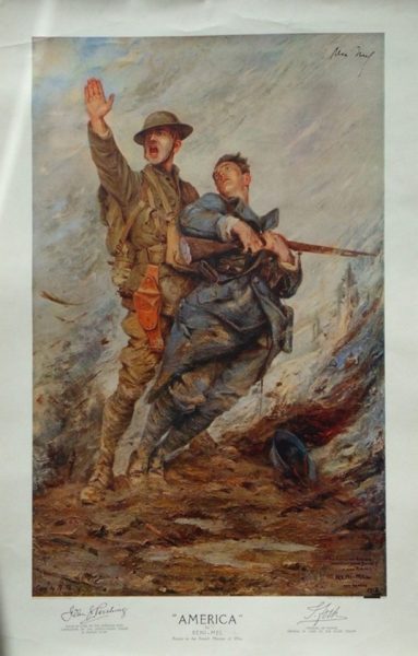 Reni-MEL (1893-1984) « America » 1916 - lithographie originelle du projet de tableau contresigné par les Généralissimes Alliés Pershing et Foch {Cat.n°335]