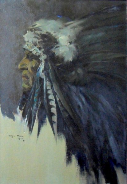 Reni-Mel (1893-1984) « Chef Sioux Lakota » 1923, Huile sur carton entoilé {Cat.n°103] - 72 x 49 cm