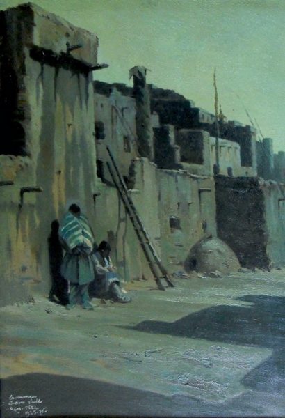 Reni-Mel (1893-1984) « Pueblo Hopi au clair de lune » 1925 Huile sur carton entoilé {Cat.n°101] 72 x 49 cm