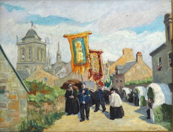 Louis Lécuyer (1903-1976) - « Troménie 1935 », huile.
