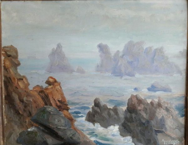 Louis Lécuyer (1903-1976) - « Belle ile en mer », rochers de Port Coton Morbihan, Bretagne, vers 1930, huile sur panneau de bois, signée, 38 x 46 cm
