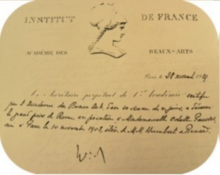 - en tant que lauréate de l’Institut : Prix Roux (peinture et enluminure), Leguay-Lebrun, Piot, Caylus de la Tour, Dagnan-Bouveret.
