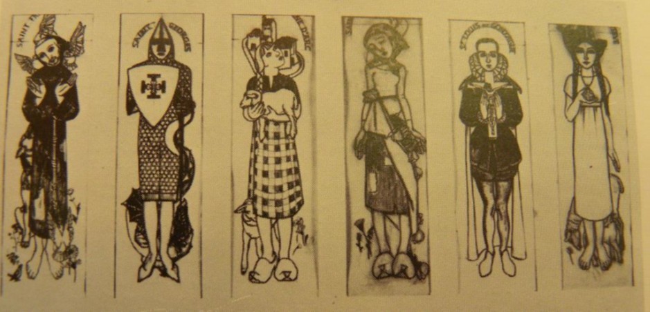 Odette Pauvert (1903-1966) - bannières pour le pavillon pontifical : "Saint François, saint Georges, sainte Jeanne d’Arc, sainte Bernadette, saint Louis de Gonzague, sainte Geneviève"